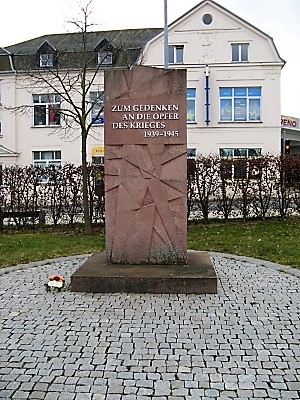 mit den Namenstafeln aus dem Stahl einer französischen Kanone der Gefallenen von 1870-71. Danach ab 1950 ein Obelisk mit aufgesetztem Sowjetstern.