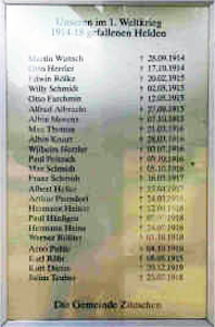 Gedenktafeln für die Gefallenen und Vermissten beider Weltkriege.