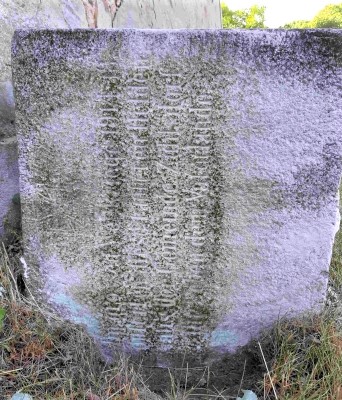 Rest eines Denkmals für die Gefallenen des Ersten Weltkriegs an der Kirchen-Außenwand: Kleiner Quader mit der Widmungsinschrift (liegt hochkant).