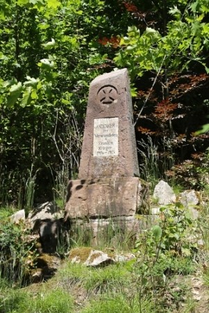 Gedenkstein oberhalb einer Sitzbank am Ende des Forchenweges.