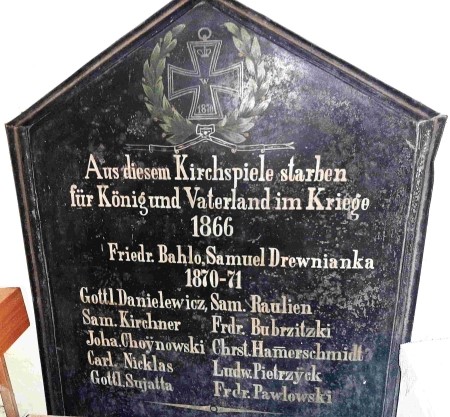 In der Kirche von Alt Jucha befinden sich noch Tafeln für die Gefallenen 1866 und 1870/71 sowie Teile einer großen Tafel für die Gefallenen des Ersten Weltkriegs, die auf der Empore abgestellt sind.