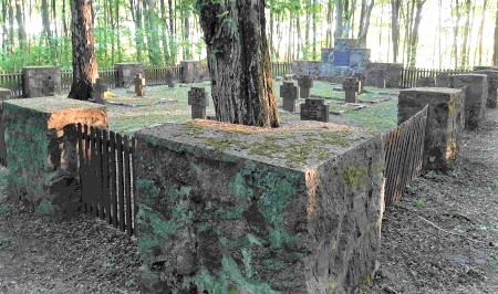 Kriegsgräberstätte für Gefallenen des Ersten Weltkriegs östlich des Ortes im Wald: Umrandet von Natursteinpfeilern mit Zaunsegmenten und Denkmal mit Widmung an der Stirnseite. Hier ruhen 48 deutsche Soldaten (davon 21 unbekannt) und 21 russische Soldaten (davon einer bekannt)