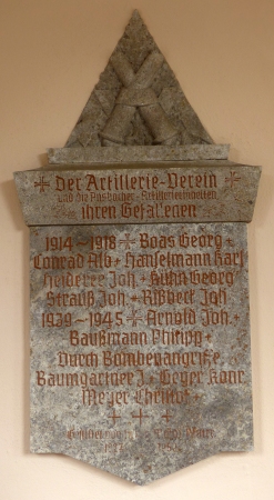 In den Arkaden hängen einige Gedenktafeln von Regimentern, die in Ansbach stationiert waren. Darunter die Tafel des Artillerie Vereins.