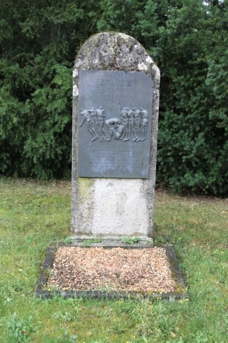 Auf dem südlich der evangelischen Kirche gelegenen Friedhof ein kleiner Platz mit einer Stele aus Stein, darauf eine Bronzeplatte. Auf der Platte oben und unten je eine Inschrift, Namen sind nicht genannt. Zwischen den Inschriften eine Gruppe von nackten, geschlechtslosen Figuren: von rechts treten einige im Trauergestus heran, in der Mitte beginnt eine Figur eine zusammengesunkene (Tote/r?) aufzuheben, links tragen zwei Figuren eine weitere (leblos? Tote/r?) fort.