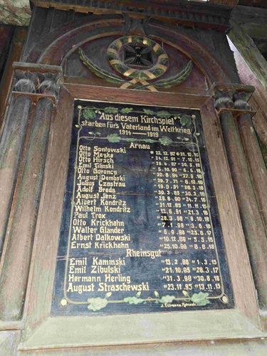 In der Kirche von Arnau hing bis 1945 eine Tafel der Gefallenen des Ersten Weltkriegs aus Arnau und Rheinsgut.