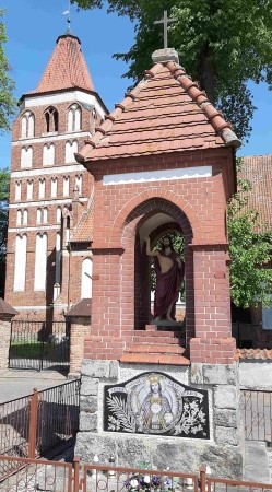 Nach 1945 wurde in Ostpreußen die deutsche Bevölkerung vertrieben und die meisten Denkmäler abgerissen, beschädigt oder umgewidmet. Dieses Denkmal steht noch in seiner äußeren Form, es wurden aber alle Teile, die an seine ursprüngliche Bedeutung erinnert, entfernt. Die Christus-Figur war schon im alten Denkmal aufgestellt. Aber selbst die Inschrift oben „Jesus lebt“ wurde entfernt, da sie auf Deutsch war. Statt der Widmungs- und Namenstafel wurde eine Steintafel mit einem weiten Bild von Christus angebracht.