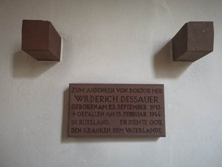 Eine einzelne Tafel ist einem Wilderich Dessauer, Arzt in einer Strafkompanie, gewidmet.