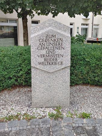 An der südlichen Seite ist es von fünf modernen Stelen für die Gefallenen des 2. Weltkriegs umgeben.