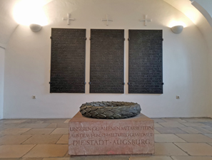 Foto © 2022 Wikimedia Commons: Category:Kriegerdenkmal Rathaus Augsburg, CC BY-SA 4.0 (Fotos verkleinert)