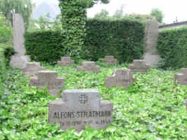 Etliche Familiengrabstätten mit Gedenken an gefallene Angehörige.