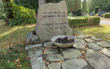 In der Nähe des Eingangs steht das Denkmal für vier Opfer des Nationalsozialismus.