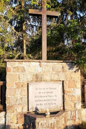 Nach 1945 wurde in Ostpreußen die deutsche Bevölkerung vertrieben und die meisten Denkmäler abgerissen, beschädigt oder umgewidmet. Hier sind keine Grabkreuze erhalten. Die Namen entstammen dem Buch: M. Dehnen - „Die Kriegsgräber in Ostpreussen von 1914/15“.