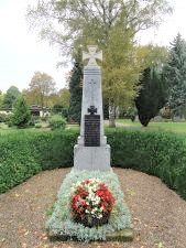 Denkmal für die Gefallenen des Ersten Weltkriegs. Stele gekrönt mit Eisernem Kreuz, davor eine schwarze Tafel mit Eisernem Kreuz und den Namen der Gefallenen.