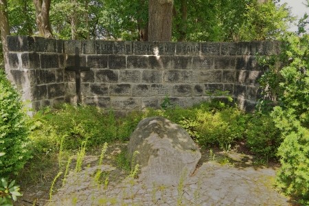 Vor der Gedenkmauer befindet sich zusätzlich ein Feldstein mit eingraviertem Helm und einem Eisernen Kreuz (inzwischen verwittert).