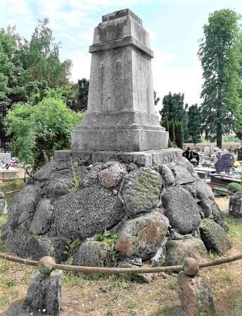 Zwei Denkmäler auf dem Friedhof von Barten. Beide sind pyramidenförmige Stelen. Die große Stele für 1870/71 ist aus groben behauenen Feldsteinen gemauert. Sie steht auf einem kleinen Hügel und hat Öffnungen für Namenstafeln. Sie wurde früher von einer Siegesgöttin gekrönt.