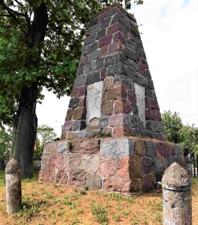 Nach 1945 wurde in Ostpreußen die deutsche Bevölkerung vertrieben und die meisten Denkmäler abgerissen, beschädigt oder umgewidmet. Hier wurden an beiden Denkmälern alle Insignien, die an ihre ursprüngliche Bedeutung erinnern, komplett entfernt. Nur am 1870er Denkmal ist noch eine Inschrift „Errichtet 1911“ zu erkennen. Lesbare Aufnahmen der Widmungs- und Namenstafeln beider Denkmäler oder Aufzeichnungen dazu sind nicht auffindbar und werden gesucht.