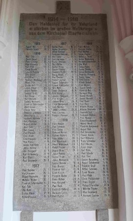 Im Eingangsbereich der Kirche zwei Tafeln für die Gefallenen des Ersten Weltkriegs.