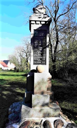 Denkmal für die Gefallenen des Ersten Weltkriegs an der Dorfstraße in der Nähe der Dorfkirchenruine.