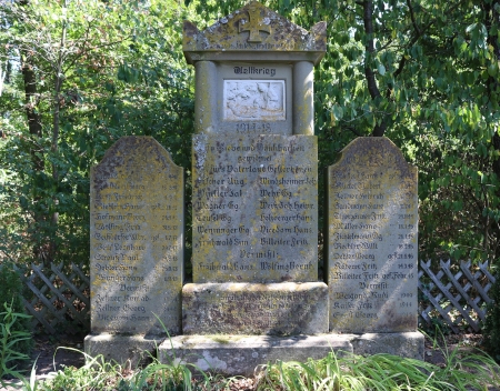 Den Mittelteil bildet eine große, massive Steintafel mit den Namen der Gefallenen und Vermissten des 1. Weltkrieges, die auf einem Stufensockel steht.
