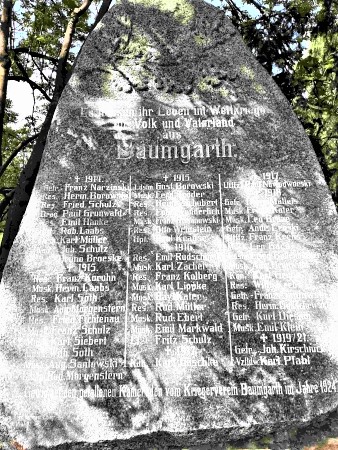 Gewidmet den gefallenen Kameraden vom Kriegerverein Baumgarth im Jahre 1924.