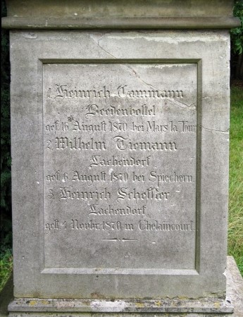 Den im Kampfe mit Frankreich gebliebenen Kriegern gewidmet, von den Mitgliedern des Kirchspiels Beedenbostel