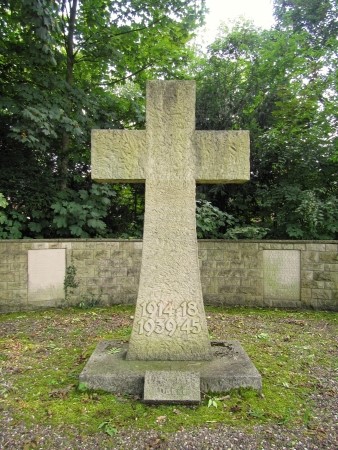 Für die Gefallenen des Ersten und Zweiten Weltkriegs ist eine halbrunde Gedenkmauer mit sechs eingelassenen Steinplatten mit den Namen der Gefallen sowie einzelne Namen in der Mauer vorhanden. In der Mitte des Halbkreises steht ein steinernes, kirchliches Kreuz.