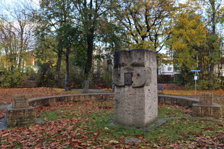 Aufgebrochene Rotunde und Skulptur in der Mitte, die einen Friedensengel darstellt.