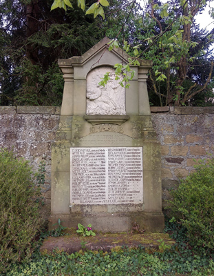 Standort ist an einer Mauer im alten Friedhof an der Friedhofstraße.