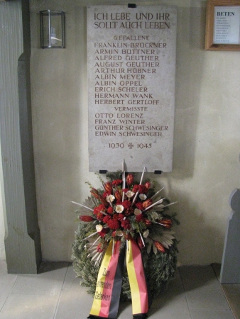 Steinerne Gedenktafeln in der evangelischen Kirche.