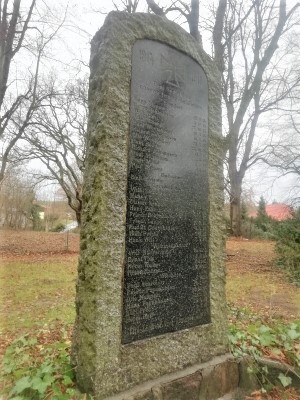 Das Denkmal befindet sich auf dem Friedhof am Ortseingang.
