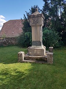 Sockel, darauf eine quadratische Steinsäule mit eingemeißelten Namen,