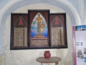 Gedenktafeln in der evangelische Kirche für die Gefallenen des Ersten Weltkriegs.