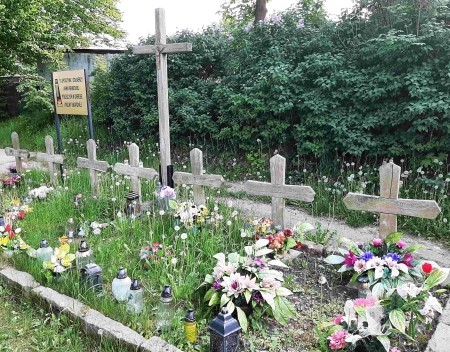 Kriegsgräberstätten des Ersten Weltkriegs auf dem städtischen Friedhof: Sieben Deutsche Kriegsgräber mit einzelnen Grabkreuzen und ein Massengrab für 40 unbekannte russische Soldaten mit einem großen orthodoxen Holzkreuz. Beide Stätten liegen getrennt, aber nahe beieinander.