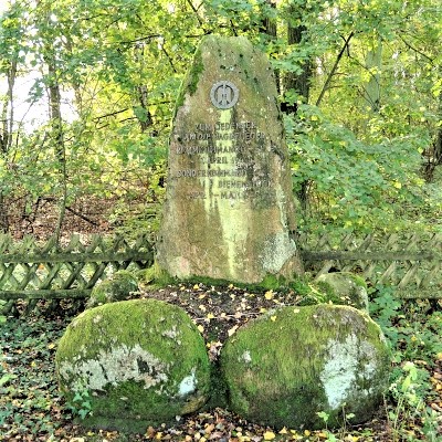 Findling mit Buchstaben aus Metall als Inschrift für die Jagdflieger des Sonderkommandos Elbe und des Kommandos Bienenstock.