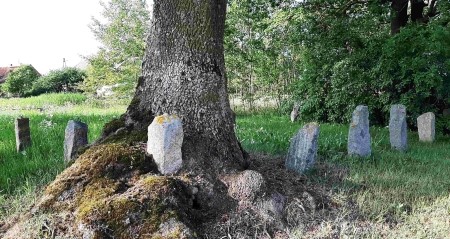 Kriegsgräberstätte für Gefallenen des Ersten Weltkriegs am Ortsrand: Kleine Fläche unter einem alten Baum mit 10 flachen Namensteinen für 36 deutsche Soldaten, darunter 14 Unbekannte. Die Fläche ist nicht abgezäunt, nur einige Begrenzungssteine ragen aus dem Boden.