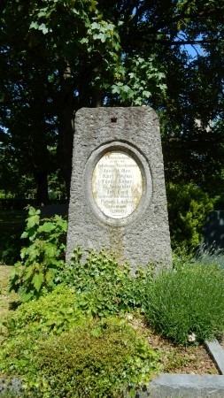 Auf dem Friedhof von Bruchsal befindet sich zwischen den Gräbern ein Gedenkstein (Gräberfeld 12, zweiter Querweg rechts),