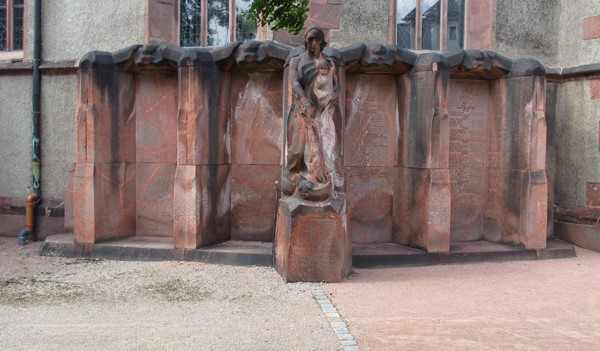 Das Denkmal wurde von Bildhauer Emil Mund (1884-1954) geschaffen und an der Außenseite der Stadtkirche aus Rochlitzer Porphyr errichtet. Es gedenkt der Toten der Stadt Burgstädt sowie der Dörfer Burkersdorf, Göppersdorf, Heiersdorf, Herrenhaide und Mohsdorf mit Schweizerthal.