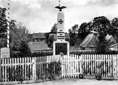 Nach 1945 wurde in Ostpreußen die deutsche Bevölkerung vertrieben und die meisten Denkmäler abgerissen, beschädigt oder umgewidmet. Hier wurde das ganze Denkmal vernichtet. Es finden sich keine lesbaren Aufnahmen oder Aufzeichnungen dazu. Diese werden gesucht.