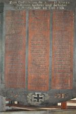 Hintergrund: Vor einigen Jahren wurde eine Erinnerungstafel „Zum Gedächtnis der im Weltkriege gefallenen Lehrer und Schüler der Realschule Calbe an der Saale 1914/1919“ im Dachgeschoß der ehemaligen Realschule, späteren Oberschule „Karl Marx“ und letztendlich als Grundschule betriebene Einrichtung in der Schulstraße gefunden. Der Zahn der Zeit hatte der gut 100 Jahre alten Holztafel erkennbar zugesetzt. Schließlich gelang es die Tafel zu bergen.