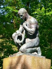 Erster Weltkrieg: „Kniender Krieger“, 1922 von Wilhelm Wandschneider (1866-1942) geschaffen (Quelle: Wikipedia).