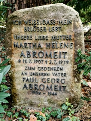 Zum Gedenken an unseren Vater Ehemann von Martha Helene Abromeit, geb. Müller (1907-1979) vermisst für tot erklärt durch Amtsgericht Berlin-Charlottenburg 1950 |