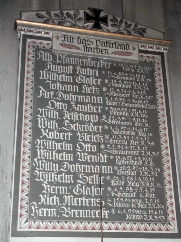 Gedenktafel für die Gefallenen des Ersten Weltkriegs in der Kirche.