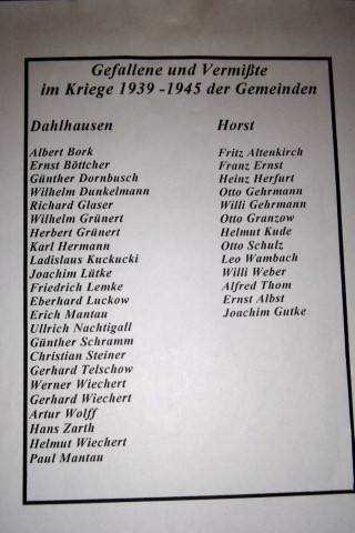 Auf dem Gedenkblatt der Gefallenen des 2. Weltkriegs sind auch Namen aus dem Nachbarort Horst aufgelistet. Da es dort weitere Gefallene der Jahre 1864, 1870 und des 1. Weltkriegs gibt wird ein eigenes Kapitel für diesen Ort angelegt.