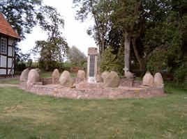 Um die Stele herum ist ein ca. 80 cm hoher Kreis aus Feldsteinen aufgemauert. Auf diesem Kreisrund sind elf Findlinge mit je einem Namen eines Gefallenen aus dem Krieg 1914 -1918 aufgestellt.