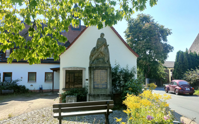 Denkmal für den 1. Weltkrieg, daneben Gedenktafel für den 2. Weltkrieg sowie ein Gedenkstein für die Vermissten.