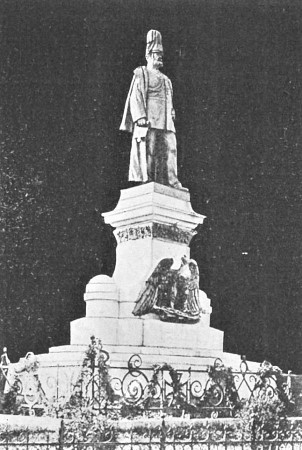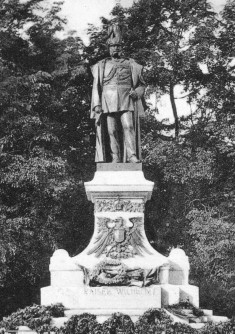 Ehemaliges Kaiser- und Kriegerdenkmal für Kaiser Wilhelm I. und die Gefallenen der Einigungskriege 1864, 1866 und 1870/71: Mehrstufiger geschwungener Sockel mit aufgesetzter niedriger verzierter Stele mit Bronze-Adler und Standbild Kaiser Wilhelms I. in Uniform und mit Paradehelm (nach 1920 abgerissen).