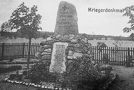Nach 1945 wurde in Ostbrandenburg die deutsche Bevölkerung vertrieben und die meisten Denkmäler abgerissen, beschädigt oder umgewidmet. Dieses Denkmal wurde komplett abgerissen. Der Feldsteinsockel stand vor einigen Jahren noch verwildert im Gelände. Namenstafel und Findling sind verschwunden. Lesbare Aufnahmen der Namenstafel (mit wahrscheinlich 11 Namen) oder Aufzeichnungen dazu sind nicht auffindbar. Diese werden gesucht.