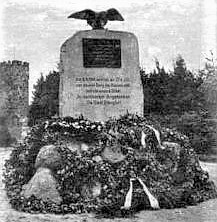 Nach 1945 wurde in Ostpreußen die deutsche Bevölkerung vertrieben und die meisten Denkmäler abgerissen, beschädigt oder umgewidmet. An diesem Denkmal wurde der Adler und eine oben angebrachte Plakette mit weiteren Inschriften vernichtet. Leider sind keine lesbaren Aufnahmen dieser Tafel auffindbar. Informationen dazu werden gesucht.