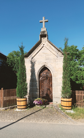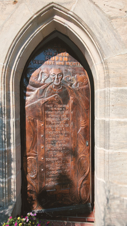 Die Eingangstür der Dorfkapelle ist dem Gedächtnis an die Gefallenen und Vermissten des Dorfes gewidmet.