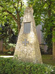 Ganz in der Nähe befindet sich das Kriegerdenkmal 1914/18, ein Steinobelisk, oben mit Deutschem Kreuz.